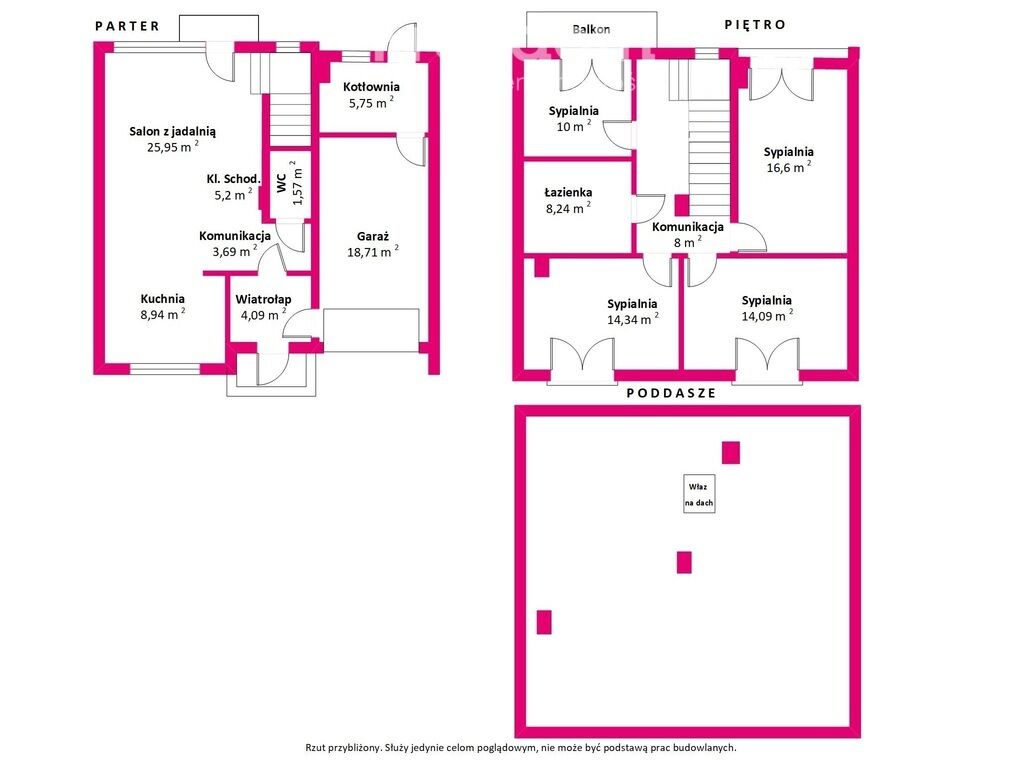 Piętro — 71,41 m² cztery komfortowe sypialnie (1 z balkonem, 3 z