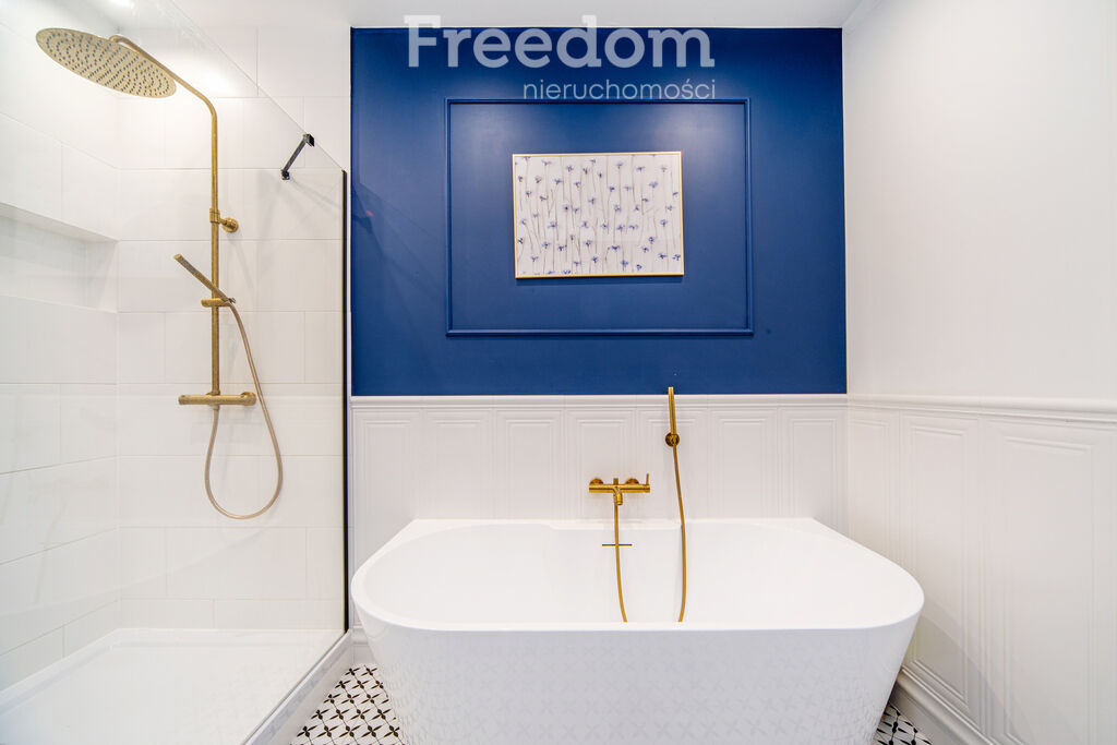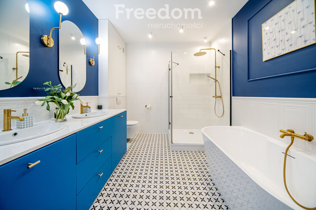 przestronna, stylowa łazienka z wanną, prysznicem, dwiema umywalkami